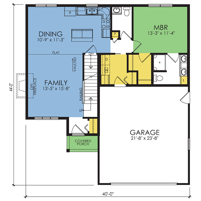 A part of our Wausau Originals, the Bayport floor plan features 3 bedrooms and 2.5 bathrooms with a foot print of 40x44 feet and 1645 total square feet of living space. Floor Plan #WO238