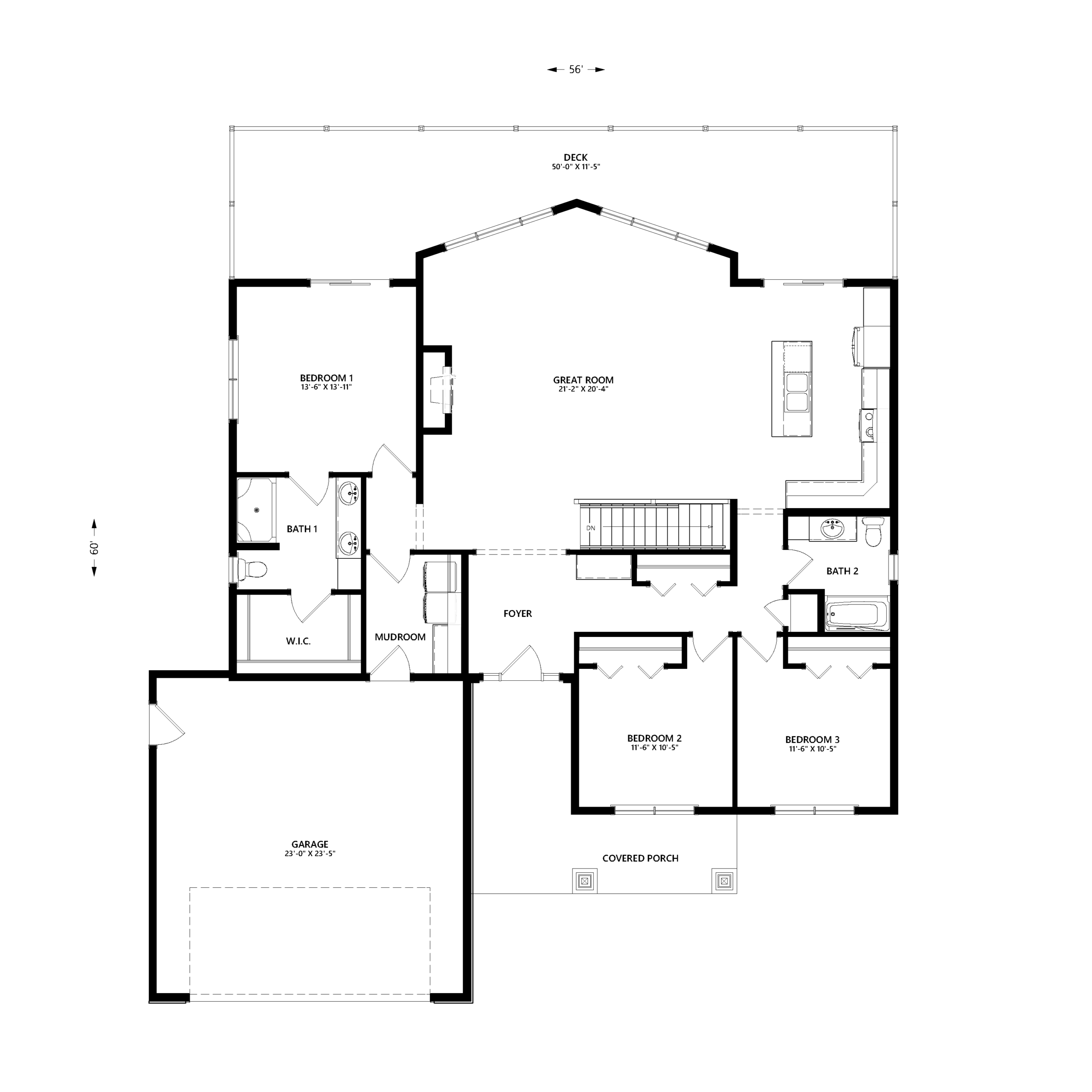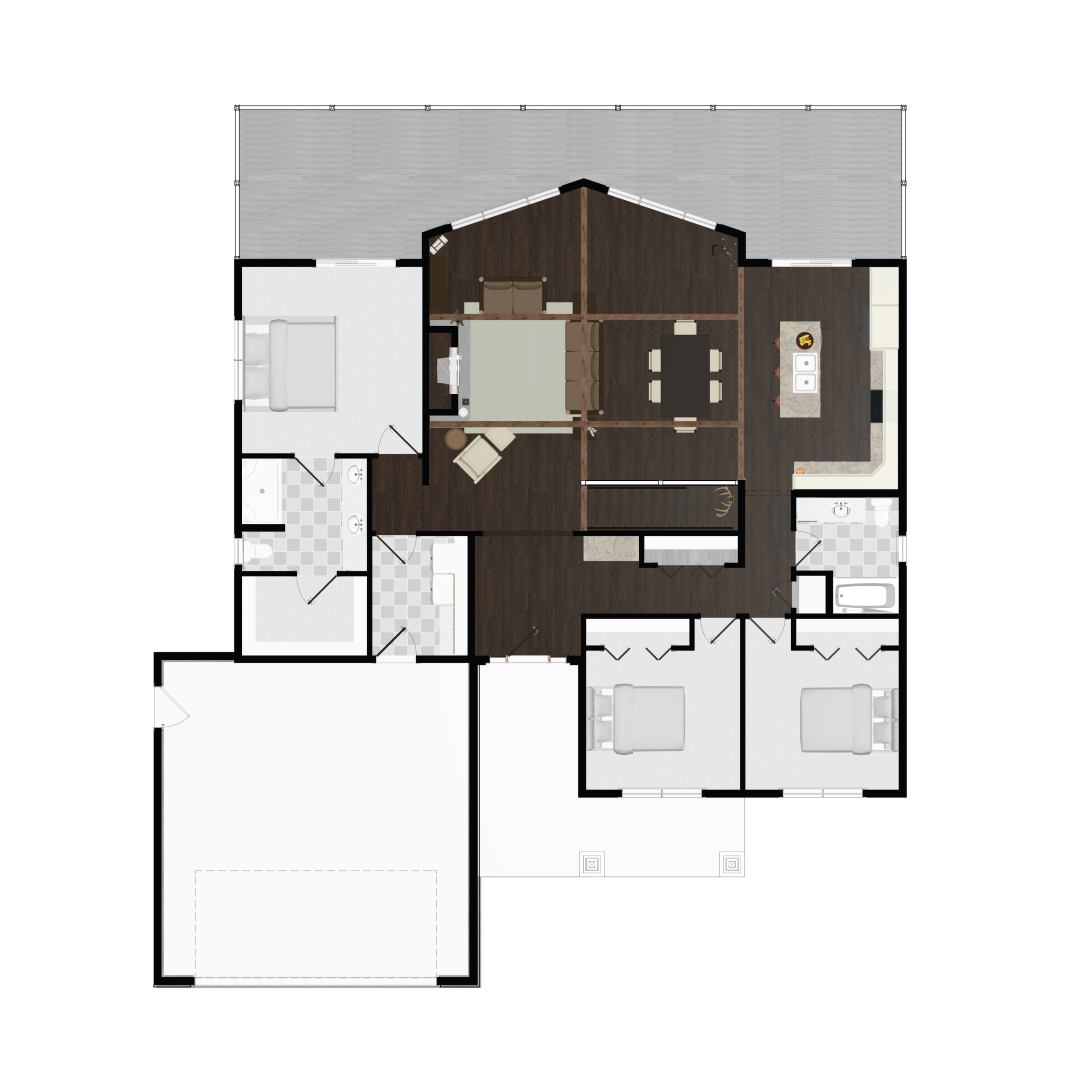 Recently redesigned, the Brule is a modern take on one of our most-loved layouts. This 3-bedroom, 2-bath home features a split-bedroom design, giving the owner's suite added privacy along with a walk-in closet and ensuite bath.