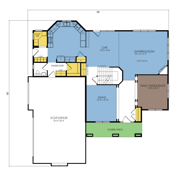 A part of our Designer Series, the Hickory Hill floor plan features 3 bedrooms and 3.5 bathrooms with a foot print of 58x60 feet and 3275 total square feet of living space. Floor Plan #DN273