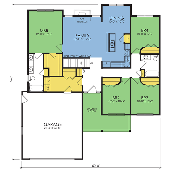 A part of our Wausau Originals, the Norcross floor plan features 4 bedrooms and 2 bathrooms with a foot print of 50x56'8" feet and 1585 total square feet of living space. Floor Plan #WO224