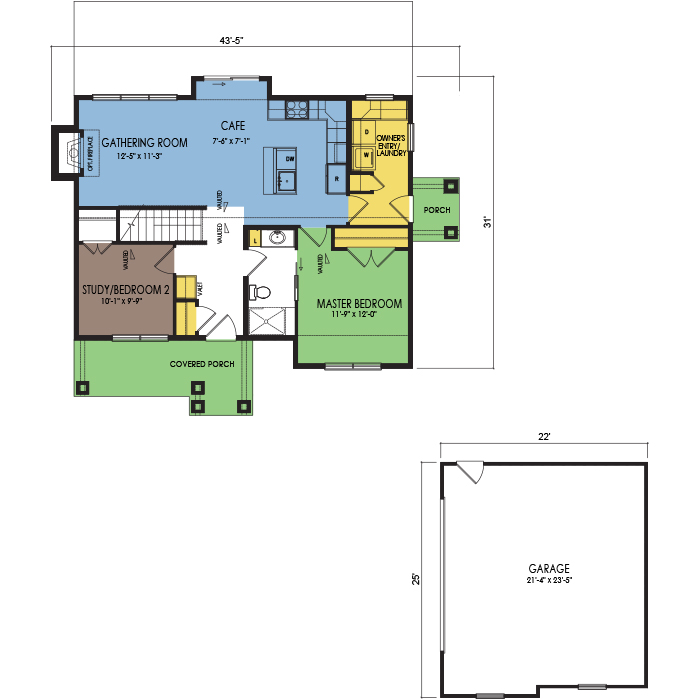 A part of our Vacation Series, the Puckaway floor plan features 2 bedrooms and 1 bathroom with a foot print of 38x31 feet and 1005 total square feet of living space. Floor Plan #VL102