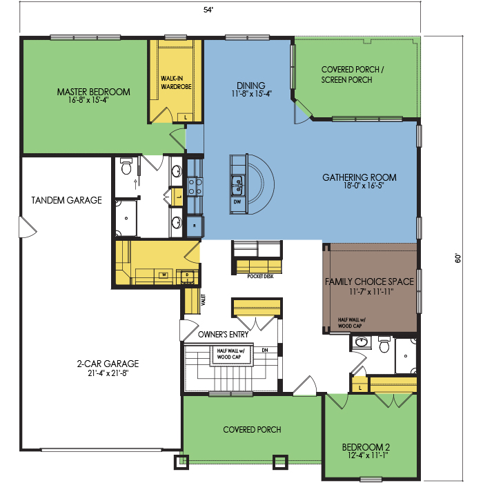 A part of our dream series, the tamarack floor plan features 3 bedrooms and 1.5 bathrooms with a foot print of 44x30 feet and 1342 total square feet of living space.